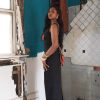 This dress balances minimalism with bold artisanal detail, making it perfect for gallery evenings, intimate events, or statement occasions where subtle drama is required.