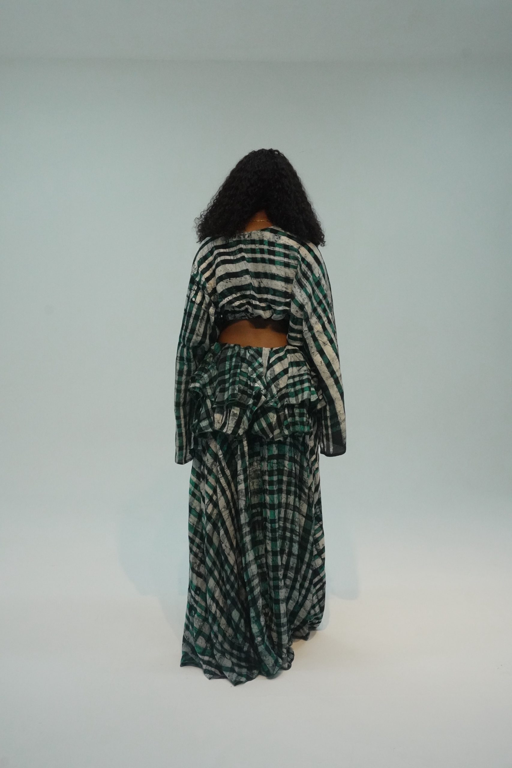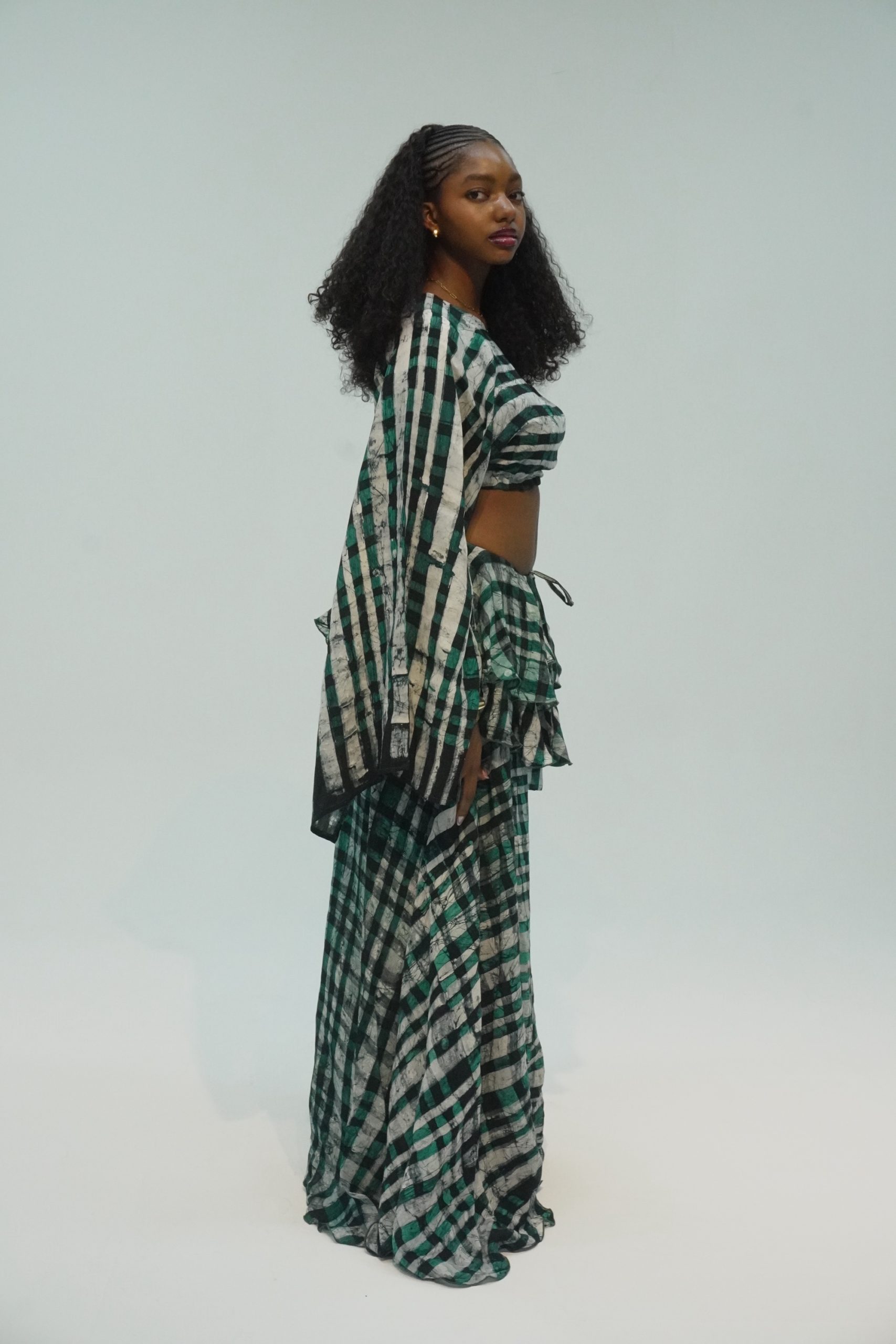 Effortless elegance meets playful structure in our Sunday Two-Piece Set, a signature look that captures the ease of slow days and the beauty of bold silhouettes. Crafted from lightweight cotton chiffon, this set features a wide sleeve crop top with a gentle boat neckline and a soft gathered hem, giving just the right amount of skin.